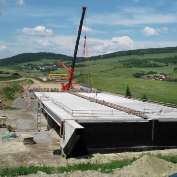 Our technical solution allows us production complex systems for several different types’ precast concrete bridges in length from 11 m to 42 m and height from 0.5 m to 2.1 m according to the span. The assembly of precast concrete elements for bridges is realized in cooperation with the company VÁHOSTAV - SK, a.s ..